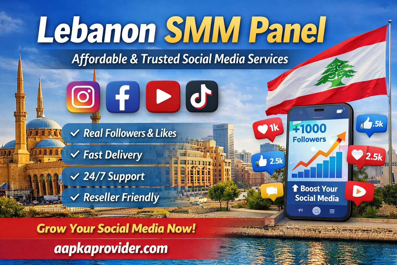 A Lebanon SMM Panel helps you boost followers, likes, views, and engagement across platforms like Instagram, Facebook, TikTok, YouTube, and more — all at affordable prices. With the right Lebanon SMM Panel, you can improve visibility, increase brand authority, and grow faster than your competitors.